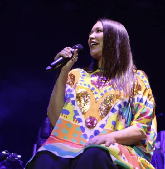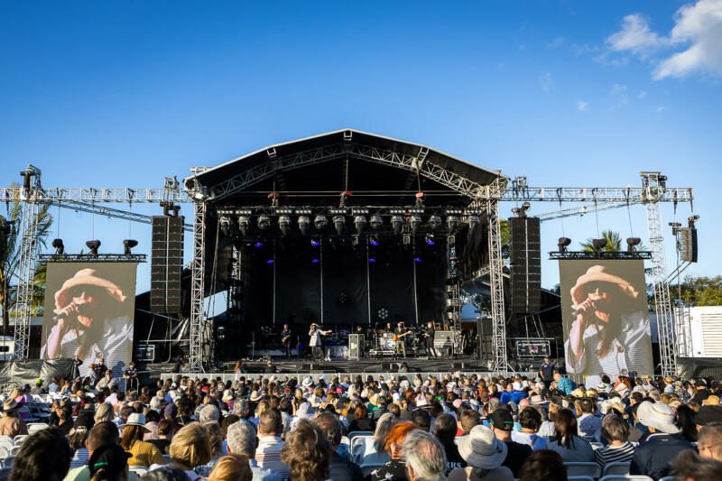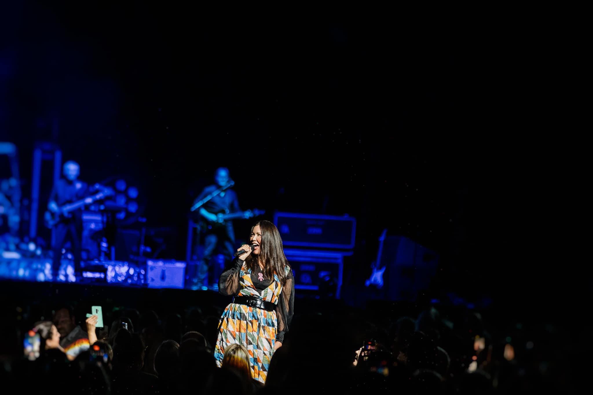 Conscious of the intensity of the Queensland afternoon sun, the artist looked absolutely glamorous, happy and comfortable, donned in her wide-brimmed hat and stylish sunglasses, looking completely at home and comfortable in front of her QLD fans.Taking advantage of the photographers in the photo pit in front of the stage, she had two willing participants assist her and took her shoes off, ready to jump up and dance on stage. Barefoot and full of energy, she flowed into her hit Stop Your Fussin, her vocals still as strong in 2023 as they were in 1988.