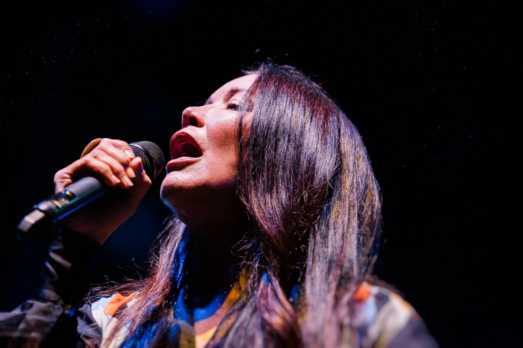 Opening her set with the determined announcement that she is here with her super power to “Pollinate with love”, Toni Childs tells us all “we’re starting with the old stuff and then we’re moving to the new stuff”. And so with that cleared up she begins her set with her 1991 Australian hit ‘I’ve Got to Go Now’. Sitting centre stage, surrounded by her five-piece band, emotively singing the song whilst casually taking off her shoes sets the scene for what’s to come.