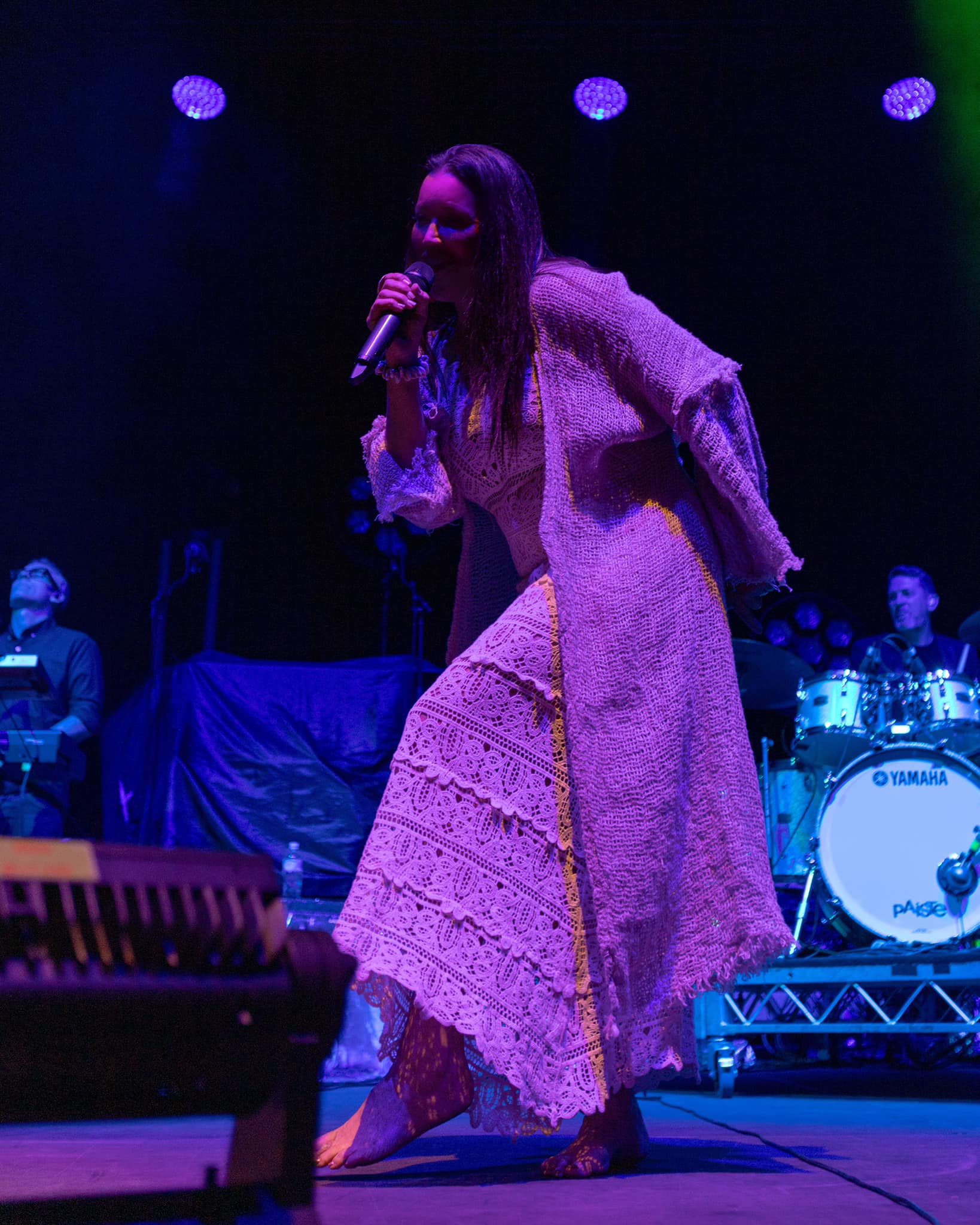 Taking out the set back to where she started, seated perched, on the front of the stage, she performed I Believe In You, singing directly to the crowd. She moved down into the barrier singing alongside her fans, joining in on the loving energy that only music can produce. Back on stage, Toni closed her Sandstone Point performance looking glamorous, confident, happy, and relaxed.